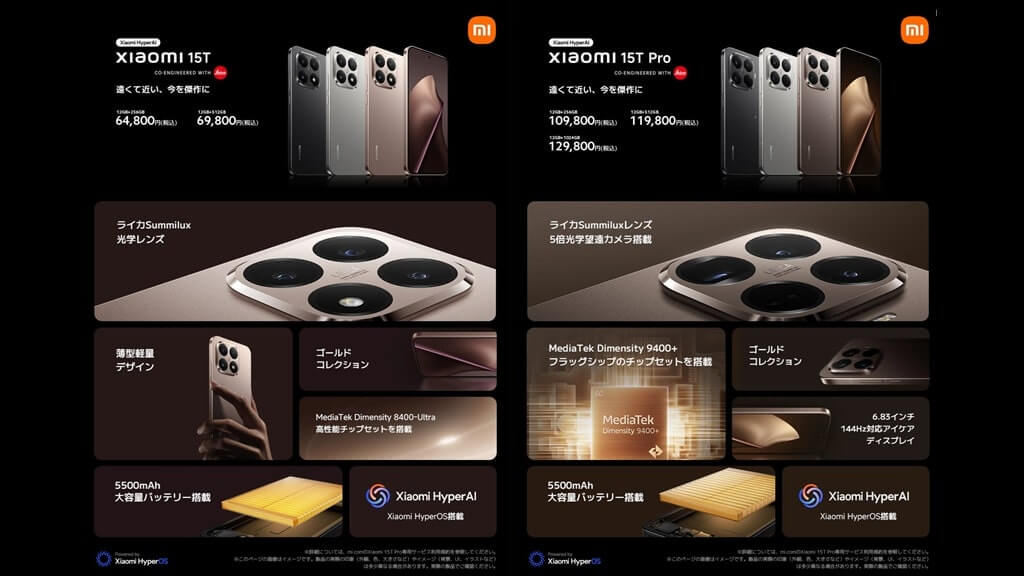 Xiaomi 15T とXiaomi 15T Proの販売価格を比較