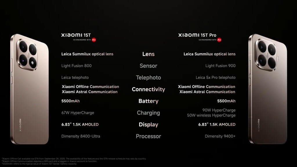 Xiaomi 15T とXiaomi 15T Proのスペックを比較
