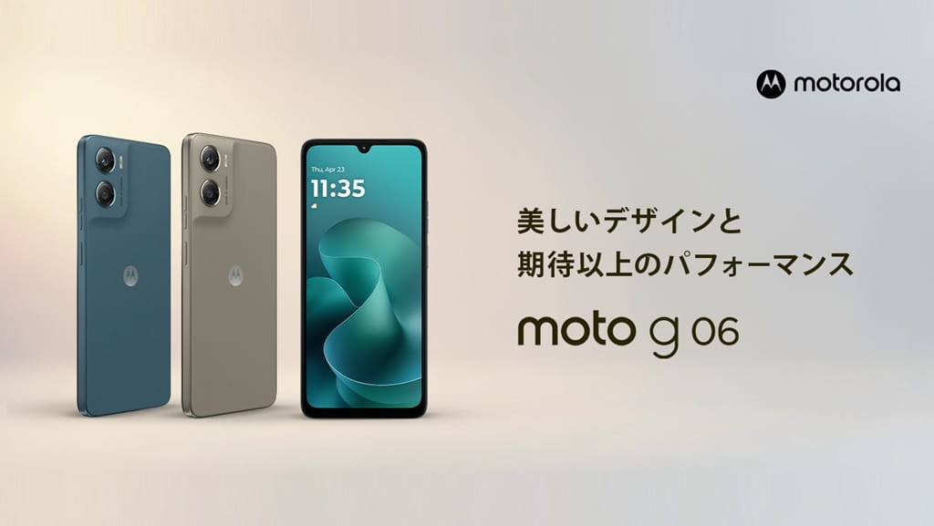 Motorola Mobility Japanは、4G対応のAndroidスマートフォン「moto g06」を発表しました。5,000万画素カメラや120Hz駆動の大画面ディスプレイ、ステレオスピーカー、5200mAhバッテリーを搭載したエントリーモデル。2026年3月19日 (木) に発売し、公式オンラインショップの販売価格は2万6,800円 (税込) となっています。